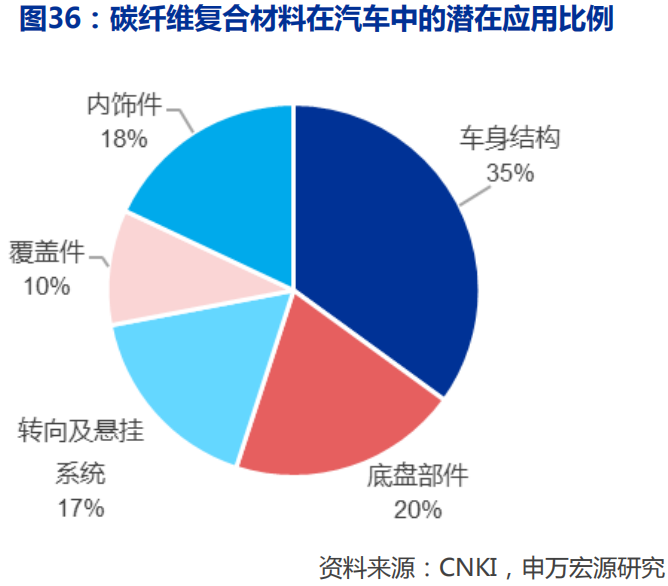 尽管如此,我们并不怀疑未来行业需求的空间,我们认为随着中国碳纤维生产能力与成本的赶超,叠加上下游产业链配套(主要是复合材料创新工艺与成本下降),碳纤维行业下游需求有望加速扩张。