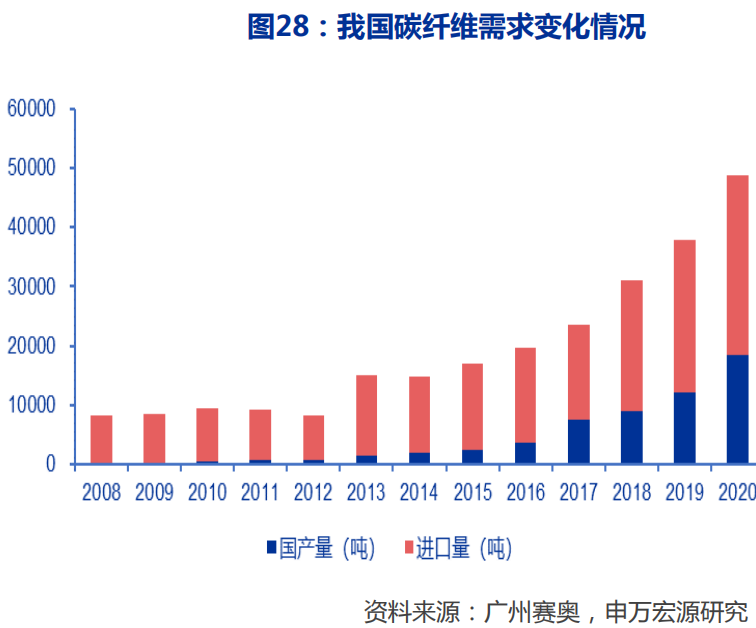 据《2020全球碳纤维复合材料市场报告》,2025年我国碳纤维需求可达15万吨,2030年30万吨可期。