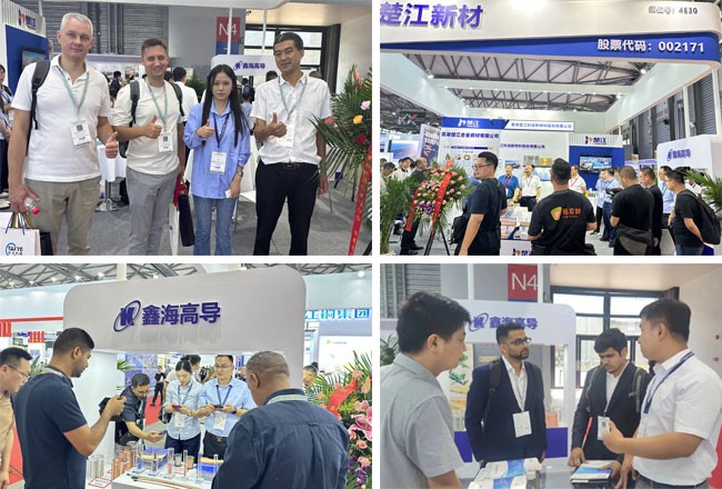 展会期间,楚江新材展位吸引了大批国内外厂商和媒体的驻足,成为现场焦点。我司高精度铜板带、高端导体和多元化合金线材产品吸引了众多潜在合作伙伴的广泛关注,双方就产品的规格型号、性能指标及应用场景进行了深入友好的交流。